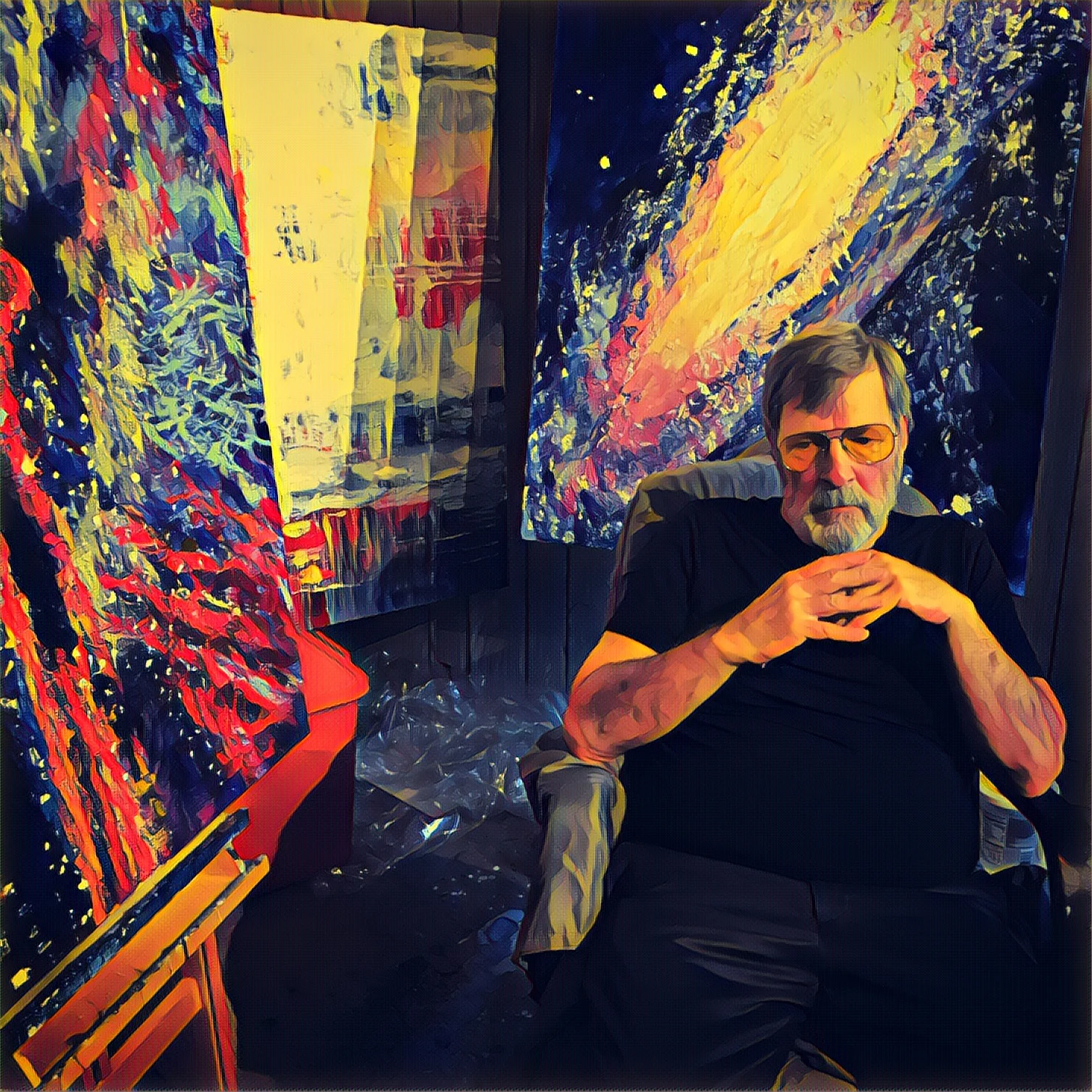 In January of 2013, Russell lost 100% of his vision due to macular degeneration and was declared legally blind. After consulting with physicians, on March 29th 2013, he chose to undergo experimental procedures which allowed him to regain 10-15% vision in one eye. It was during this dark time that Carter picked up a brush and painted his first post-blindness piece. Although he had no reason to believe this endeavor to persevere could be a success, he sold the painting within one week. Soon his efforts blossomed and his works began to get recognition throughout the art world. Armed with a seed of belief that further medical study would help future fellow sufferers, he continues painful treatments to this day.
